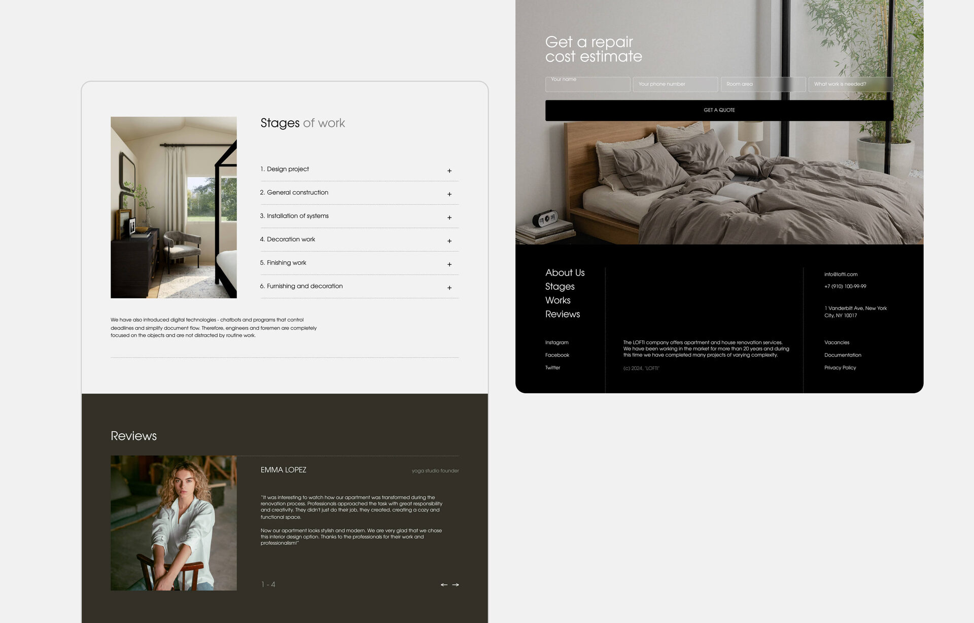 We began with moodboards that combined architectural bureau aesthetics, Scandinavian minimalism, and slow lifestyle photography. The color palette is built on muted, natural tones that support the values of comfort, privacy, and understated premium quality.